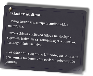 Možemo Vam prevesti preko sto stranih jezika, većinom s izvornim a ne priučenim govornicima.